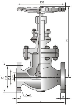 | in | mm | L | D | D1 | D2 | b | f | Z-d | D0 | H | ||